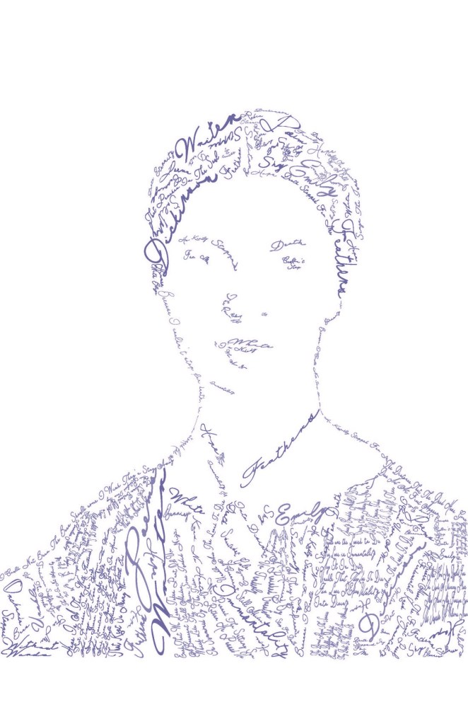 This is a typographical portrait of Emily Dickinson that I created in Illustrator with the trace program. Afterwards, I used the text warp tool to create the words you see here. I chose Emily Dickinson because she inspires me. Her words make people think about the possibilities beyond the surface. I went with a handwritten font because I feel like it embodied her style and because she was a writer. I chose dark purple to help break up the negative space but to also bring some feminine color to the portrait.